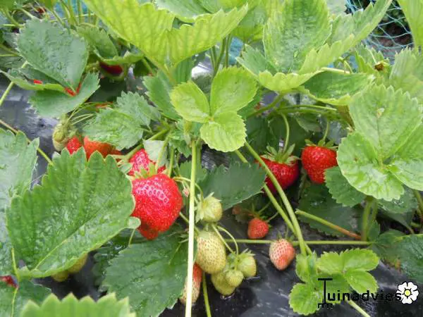 Fragaria x ananassa 'Elsanta' is een aardbeisoort dat een goede houdbaarheid heeft met een hoge productiviteit