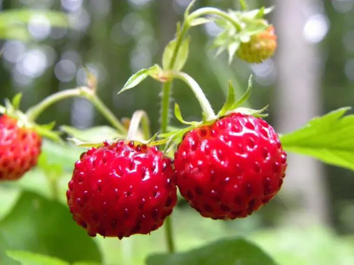 Fragaria vesca 'Reine des Vallées' produceert van mei tot de vorst kleine aromatische rode aardbeitjes.