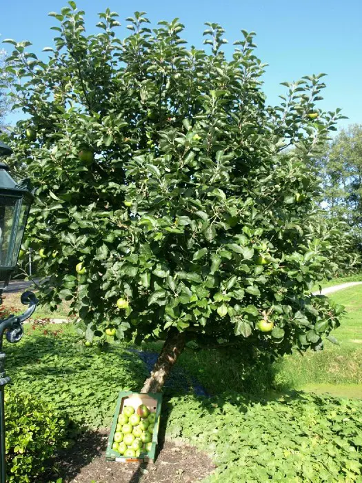 Een zure groene appel met rode blos, wordt vooral gebruikt voor appelmoes en taarten.