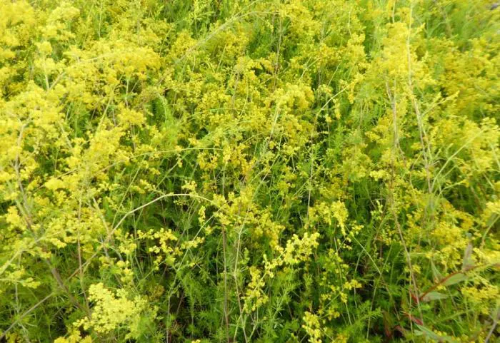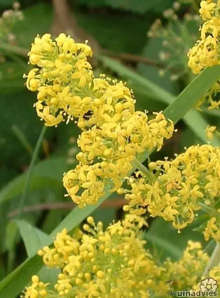 De bloem is goudgeel of citroengeel en heeft een grootte van 2-4 mm. De kroonslippen hebben een fijne stekpunt en een omgerolde rand. De onderzijde van de bloem is behaard. De bloemen hebben een honingachtige geur. De bloeiwijze is een pluim. De bloemen vormen bijschermen die samen een soort pluim vormen. De soort bloeit van juni tot de herfst. De vrucht is een tweedelige splitvrucht die onbehaard is en 1-1,5 mm lang wordt. De rijpheid van de vruchten is te controleren aan de hand van de kleur: zodra deze zwart is, is de vrucht rijp.