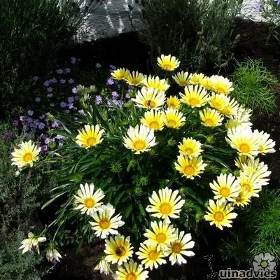 Bloeit van de zomer tot de herfst met madeliefachtige bloemen in felle kleuren en tweekleurige bloemen zoals felrood, felroze, oranje, donkerbruin en felgeel.