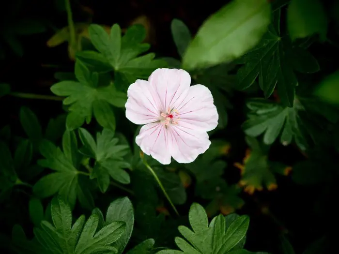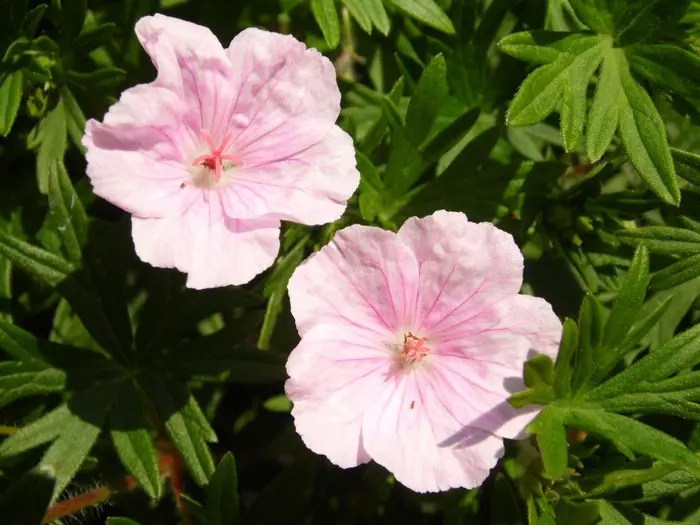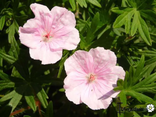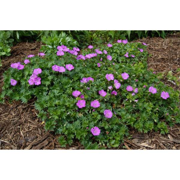Geranium sanguineum 'Compactum' onderscheidt zich van de soort door zijn compacte groeiwijze en vormt een laag kussen van zeer fijn verdeelde appelgroene bladeren dat in de herfst oranjegeel/rood kleurt.
