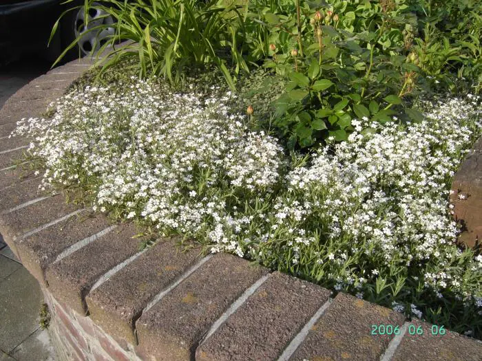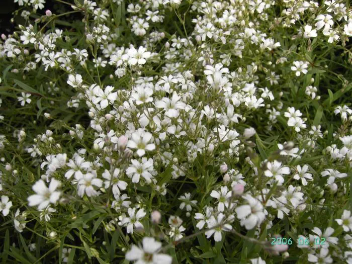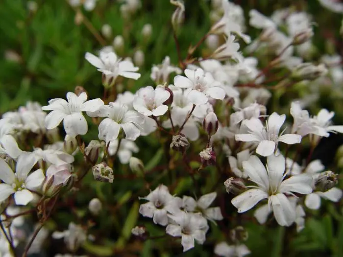 Gypsophila repens is een kruipende bodembedekkende plant met half wintergroen, blauwgroen blad.