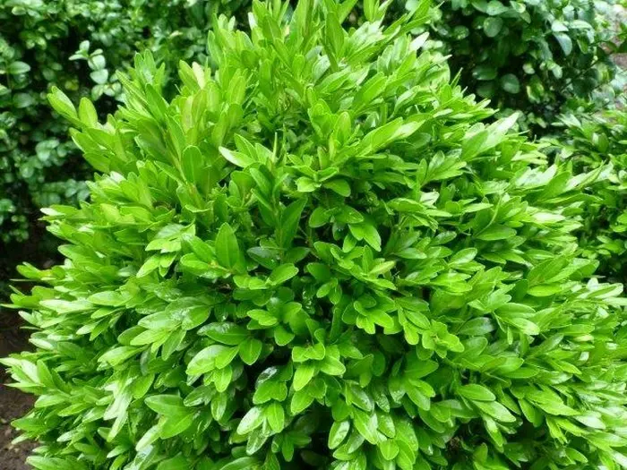 Buxus Sempervirens 'Haller' heeft een opgaande groeiwijze met donkergroene glanzende bladeren.