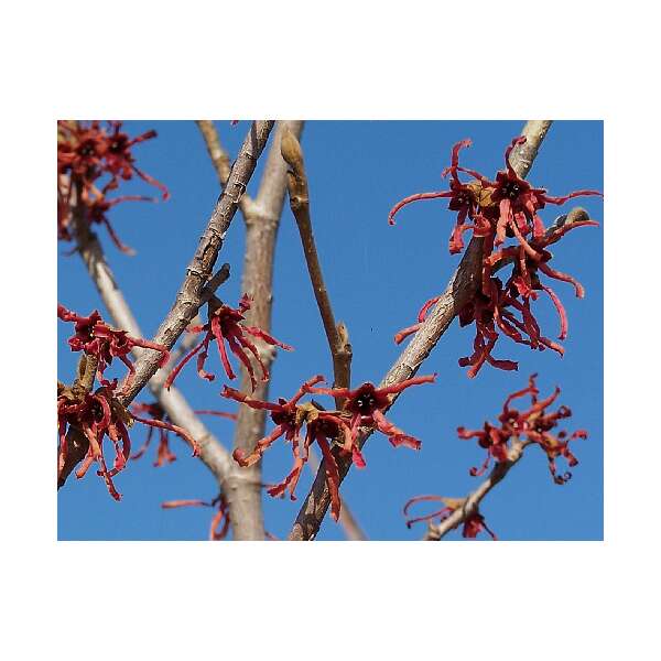 Hamamelis x intermedia 'Ruby Glow' is een recht opgaande struik met een zeer bijzondere bloei. Fleurt het seizoen op met trosjes van licht geurende, bruinrode filamenten op de kale takken.