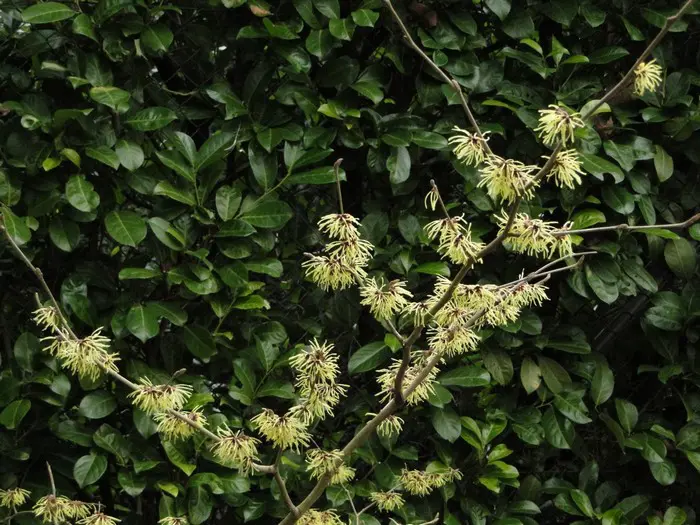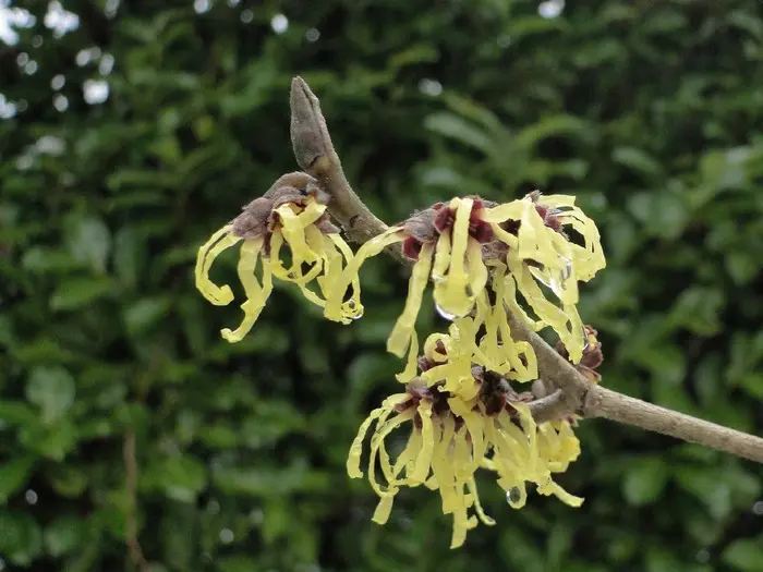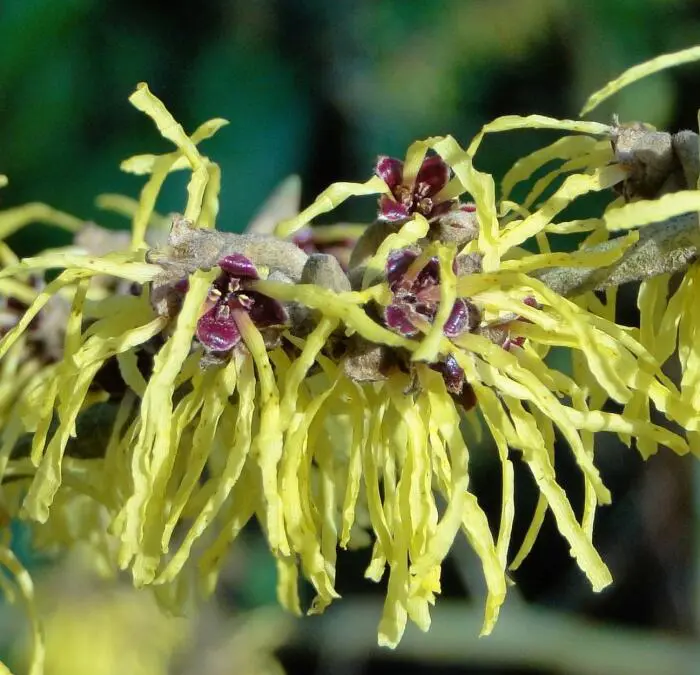 Hamamelis x intermedia is een recht opgaande struik met een zeer bijzondere bloei. Fleurt het seizoen op met trosjes van licht geurende, felgele filamenten op de kale takken.