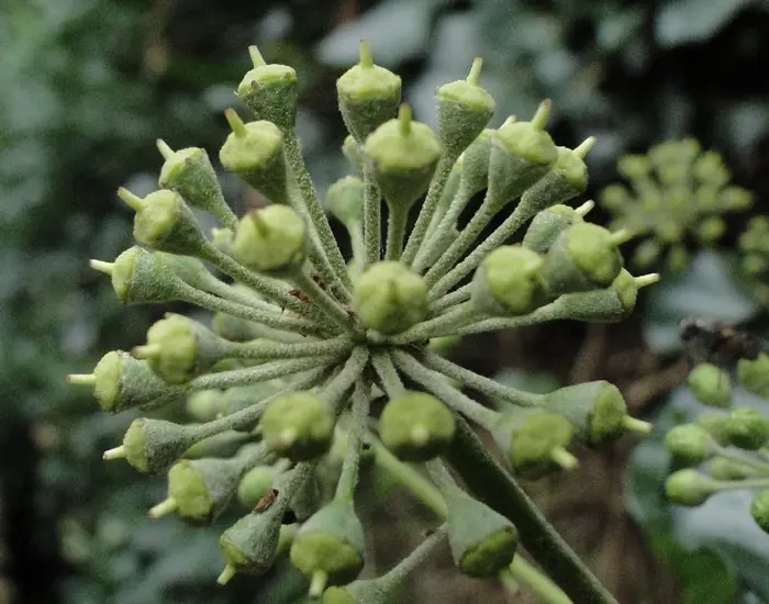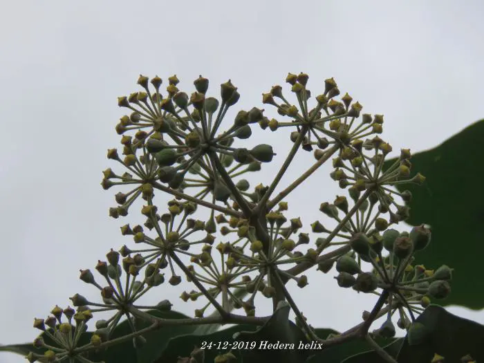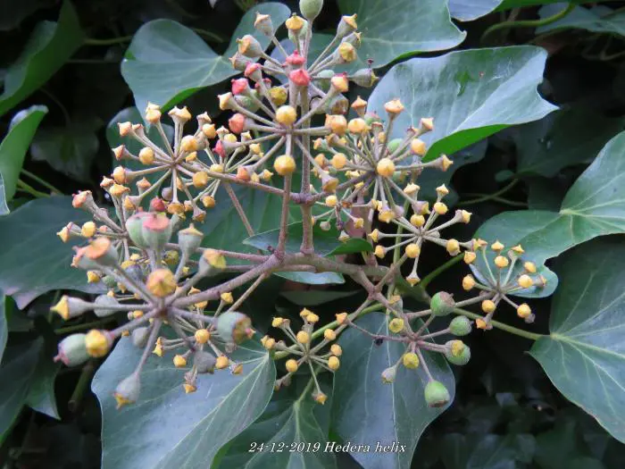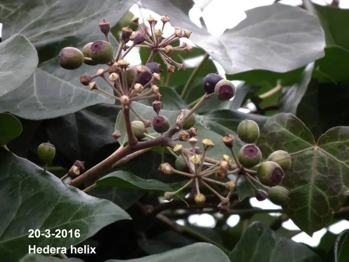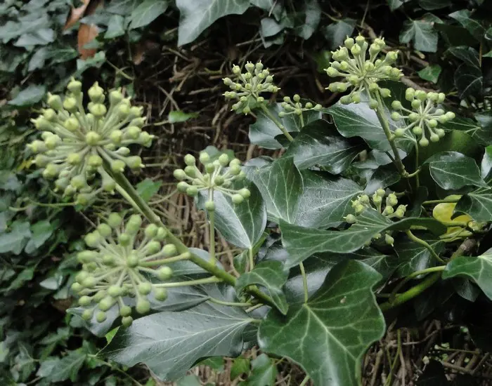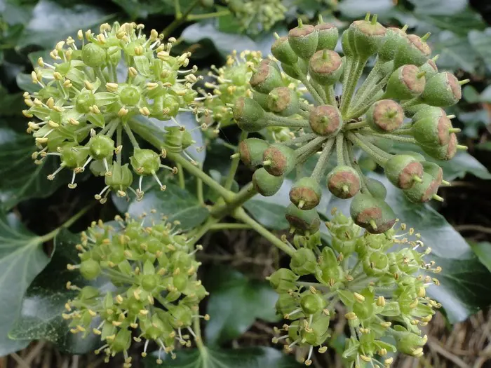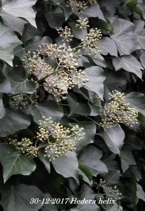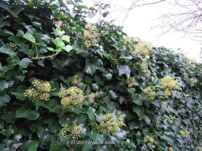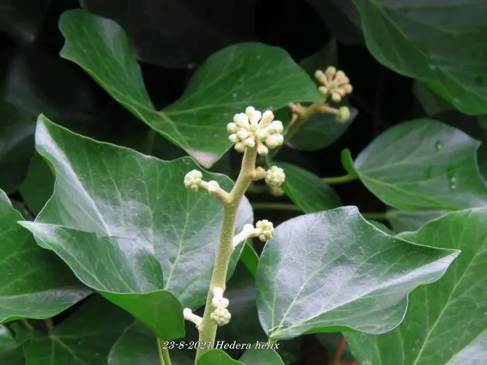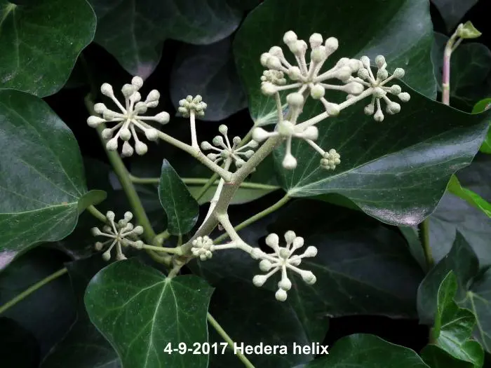 In het najaar bloeien de groengele bloempjes die intensief worden bezocht door allerlei soorten bijen.