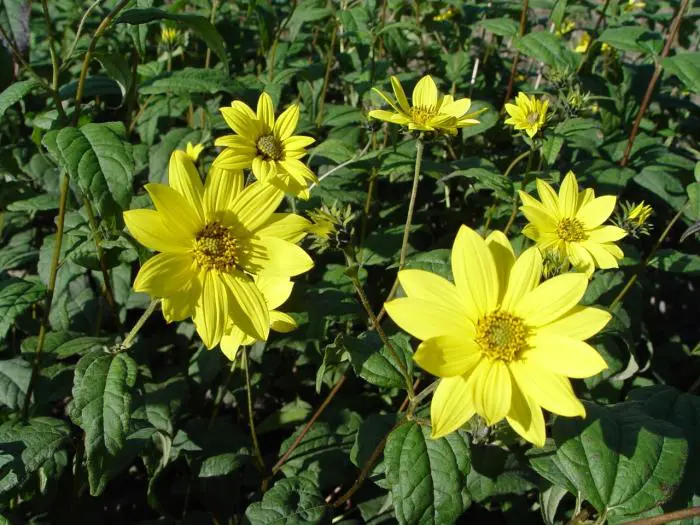 Helianthus microcephalus 'Straffe Prairie Gast' is een meerjarige, niet woekerende, bossige zonnebloem.