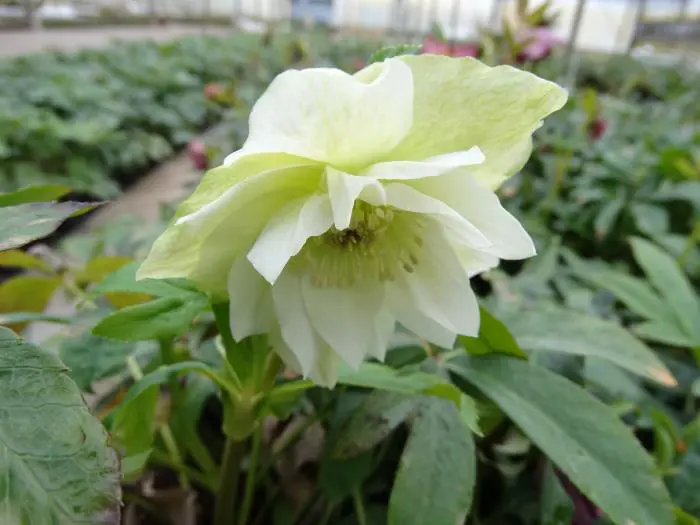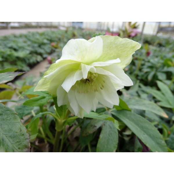 Helleborus orientalis 'Double Ellen' is een selectie met prachtige dubbele bloemen op lange stelen.