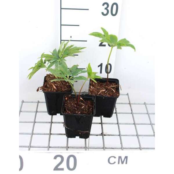 Helleborus purpurascens heeft een erg mooi handvormig blad dat uitloopt met een donzige onderkant.