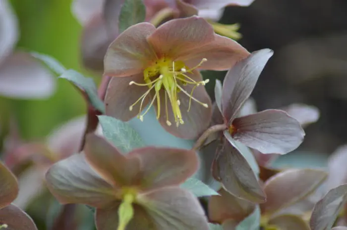 Helleborus x sternii ‘Silver Dollar’ is een kleine nieskruid met prachtige grijsgroene, gekartelde bladeren op roze stelen.