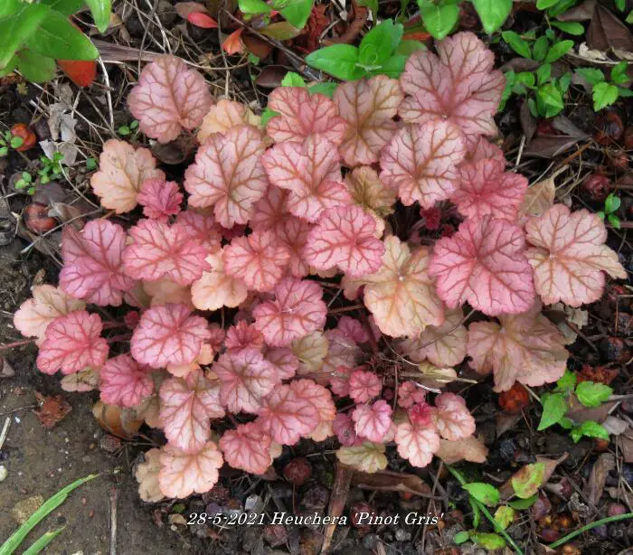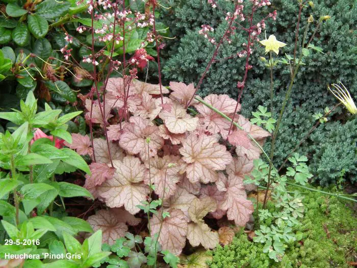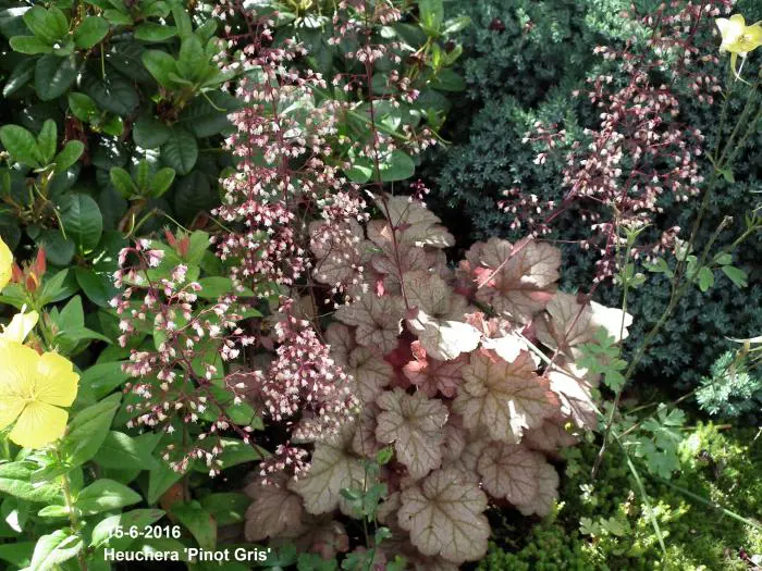 Heuchera's wortelen vrij oppervlakkig en dienen dus iets dieper dan de kroon geplant te worden.