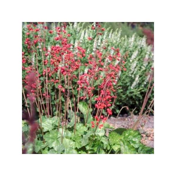 Heuchera sanguinea 'Leuchtkäfer' zijn planten die er steeds netjes uitzien en die mooie ijle scharlakenrode bloemen op lange fijne stelen krijgen.