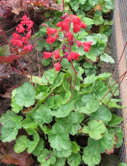 Heuchera's wortelen vrij oppervlakkig en dienen dus iets dieper dan de kroon geplant te worden.