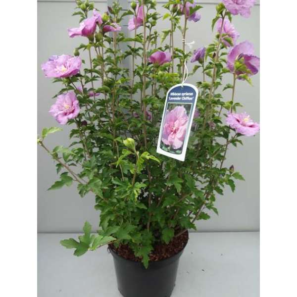 'Lavender Chiffon' is een rechtopstaande heester met een compacte groeiwijze en donkergroene bladeren die in het najaar geel verkleuren.
