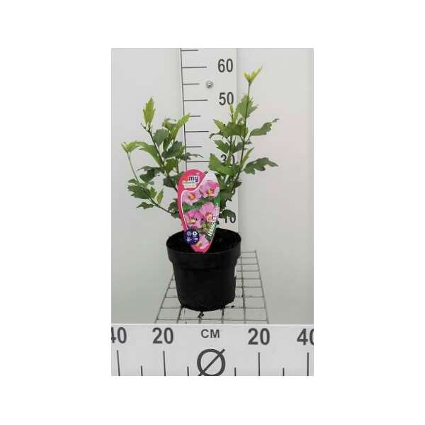 Hibiscus syriacus 'Pink Giant' is een rechtopstaande bossige heester met een compacte groeiwijze en donkergroene grofgetande, drielobbige bladeren die in het najaar geel verkleuren.