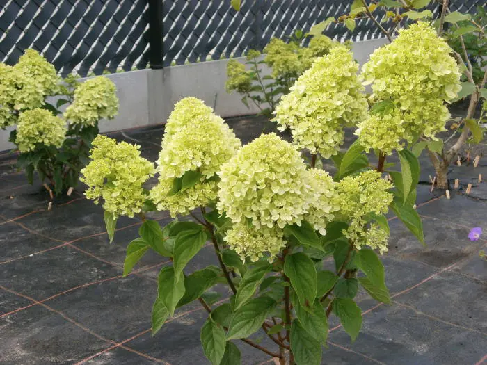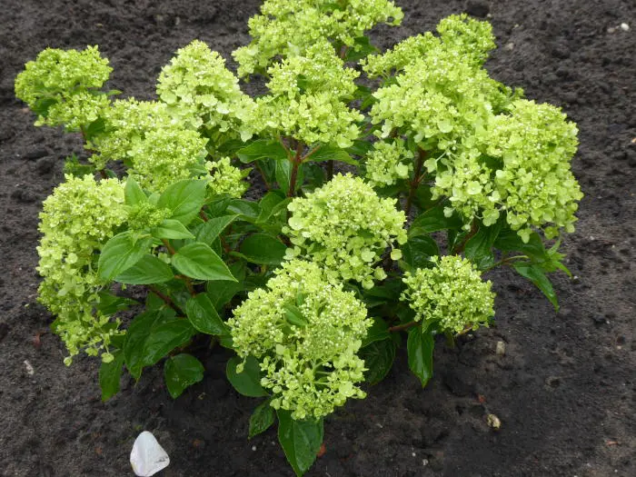 Een compacte struik met limoen- tot cremewitte steriele bloemen op stevige stelen. De bloemen worden witter op arme grond, dus voor mooie groenachtige bloemen is het beter te planten op een vochtige en vruchtbare grond.
