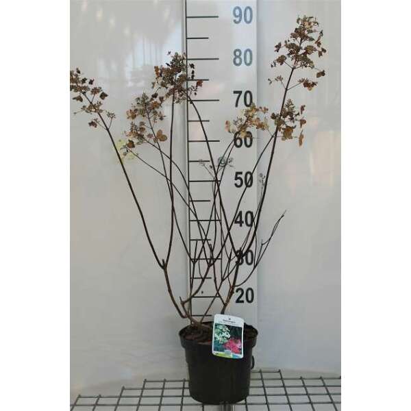 Hydrangea paniculata 'Pink Diamond' heeft typische kegelvormige witte bloempluimen die vanaf augustus sterk verkleuren naar donkerroze.