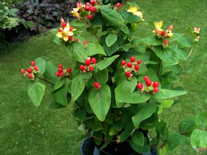 Na de bloei verschijnen in het najaar de oranjerode naar chocoladebruin verkleurende besjes. Deze worden veel gebruikt in de bloemsierkunst.