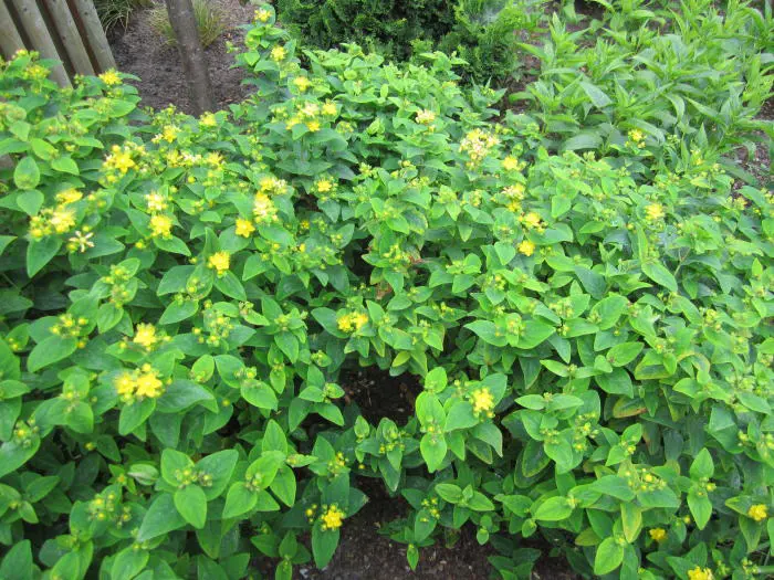 Hypericum 'Miracle Blossom' is een compact bossige struik dat even breed als hoog wordt.