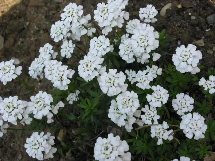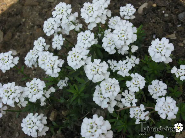 Iberis sempervirens 'Senior' is een robuuste plant met donkergroen blad en geurige witte bloemen.