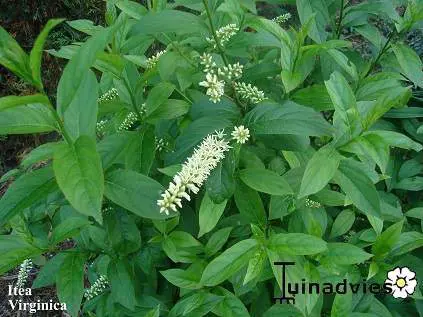 Itea virginica bloeit met roomwitte pluimvormige bloemen.