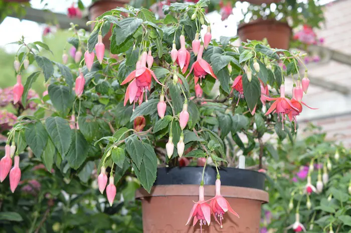 Fuchsia 'Fire Mountain' is een halfhangende bellenplant met grote bloemen.