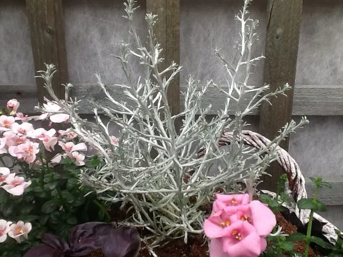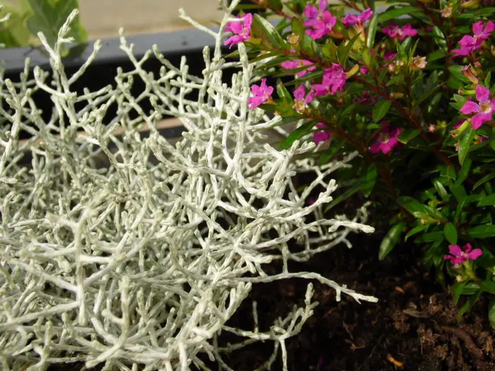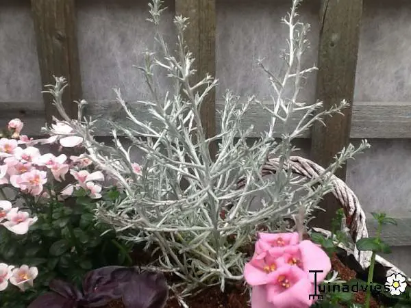 Is mooi te combineren met fel paarsrode bloeiers in hangmanden zoals Petunia 'Burgundy'.