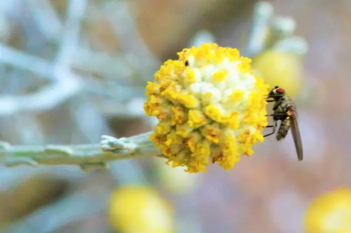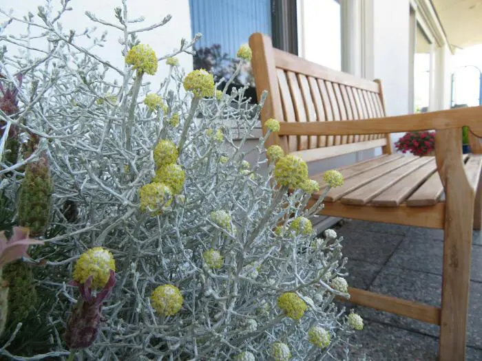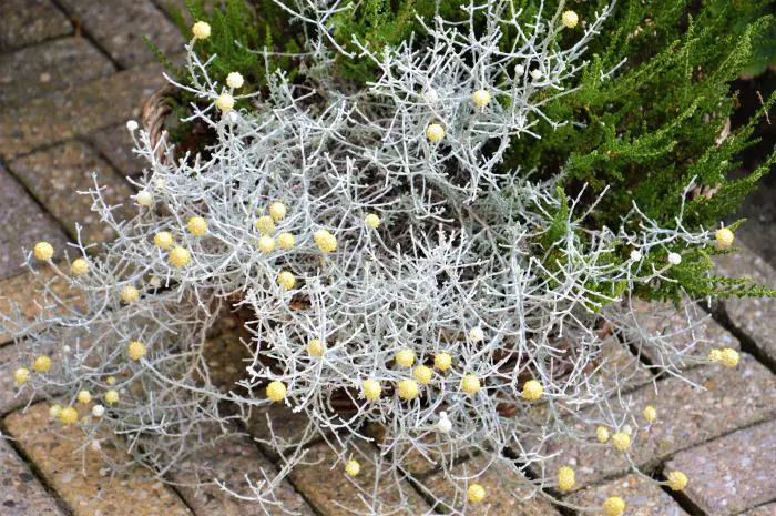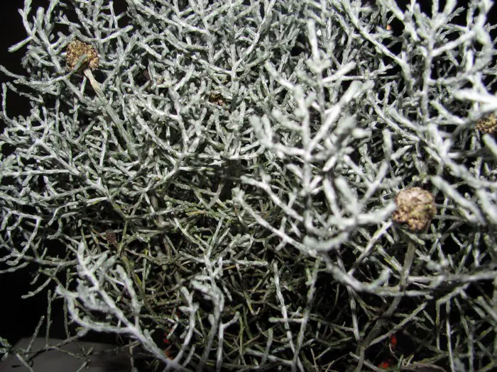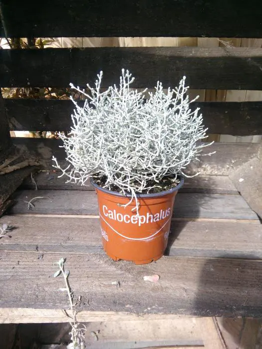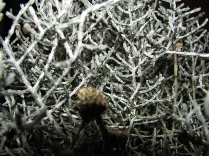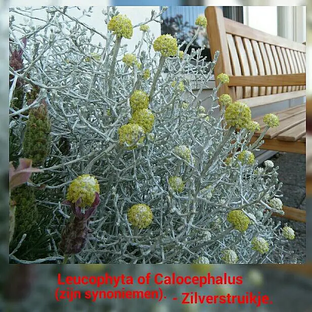 Leucophyta brownii is een laag heestertje met zilvergrijs behaard, naaldvormig blad.