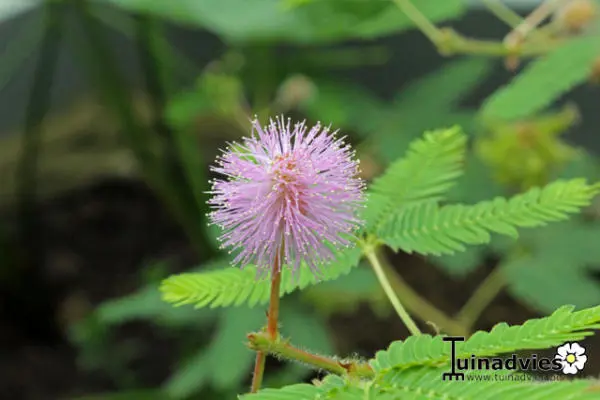 Mimosa pudica is een zeer opmerkelijk plantje waarvan de blaadjes dichtvouwen bij aanraking om enkele minuten later zich weer te ontvouwen.