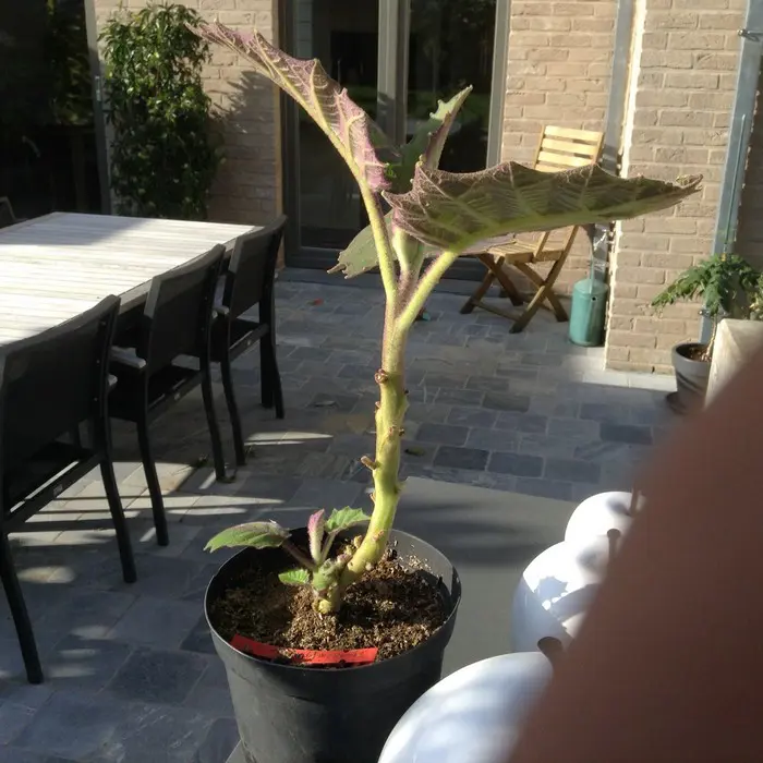 In de zomer mag de plant buiten staan op een warme zonnige plek.