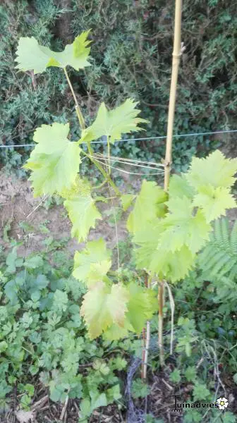 Vitis vinifera 'Nero' produceert trossen van zeer grote zoete blauwe druiven.
