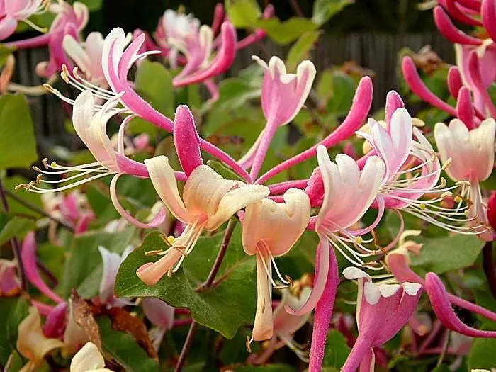 Lonicera periclymenum 'Serotina' is een sterke groeier. De kleur van de bloem is aan de buitenkant