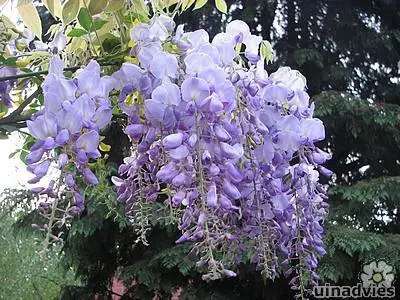 Deze Amerikaanse blauwe regen is linksdraaiend en wordt minder hoog (+/- 4m) waarvan de bloemtrossen ook compacter zijn (18cm).