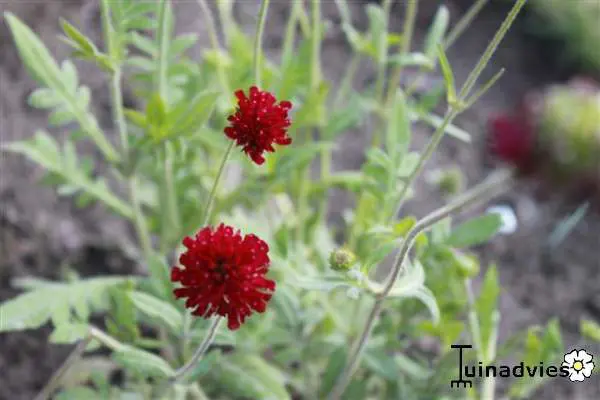Plant ze best tussen stevige planten die de Knautia kunnen steunen.