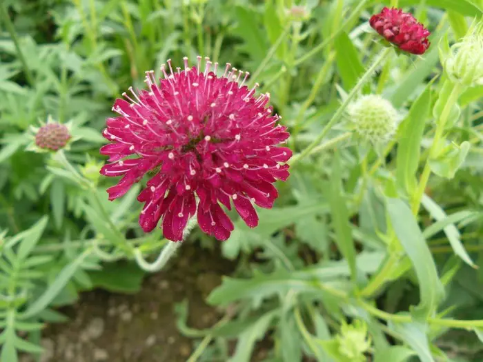 Plant ze best tussen stevige planten die de Knautia kunnen steunen.