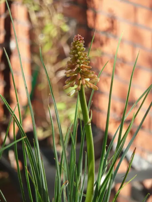 De bladeren van de Kniphofia 'Orange Vanilla Popsicle' zijn korter en grasachtiger dan de andere Vuurpijlen.