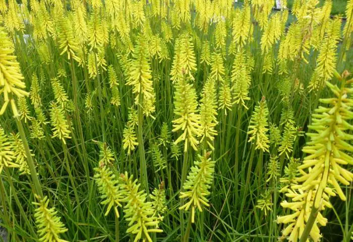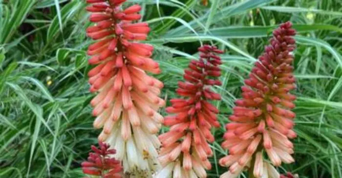 Kniphofia POPSICLE is een serie met een meer compacte groeiwijze, een lange bloeiperiode en een goede herbloei. Bloeien op lange kale bloemstengel met aarvormige bloemtrossen.