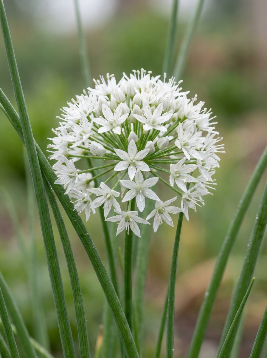 De bolvormige bloempjes zijn wit en kunnen eveneens gebruikt worden als eetbare garnering.