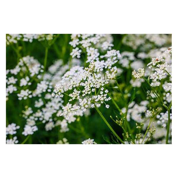 Aan dit keukenkruid is alles eetbaar zowel het fijn geveerd lichtgroen blad als de witte schermbloemen maar ook de lang gerekte peenwortel.