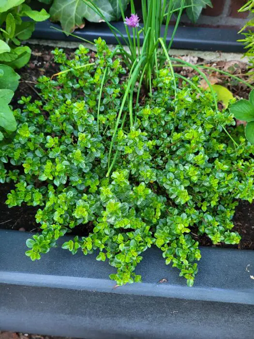 Thymus pulegioides 'Tabor' is een kruipend bossig struikje met glanzende groene blaadjes die groter zijn dan bij de gewone tijm.