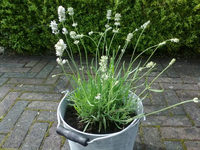 Lavandula angustifolia 'Artic Snow' is een zeer lage witte variant dat goed compact blijft.