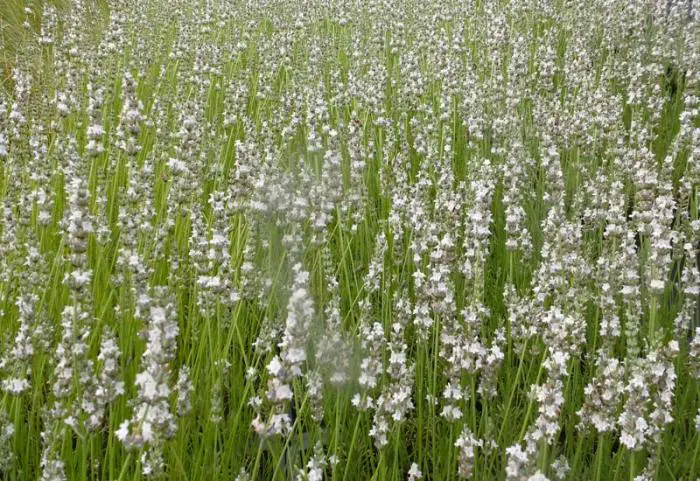 De witbloeiende Lavandula x intermedia 'Edelweiss' is een halfheester die heel veel gebruikt worden in de tuinen om plantvakken mee op te vullen. Ze zijn mooi grijsbladig en staan graag op een zonnige standplaats die in de winter niet te nat is.
