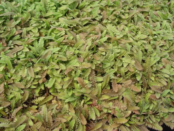 Zodevormend plantje dat amper 2 à 5 cm hoog wordt, met zeer kleine bruingrijze blaadjes.
