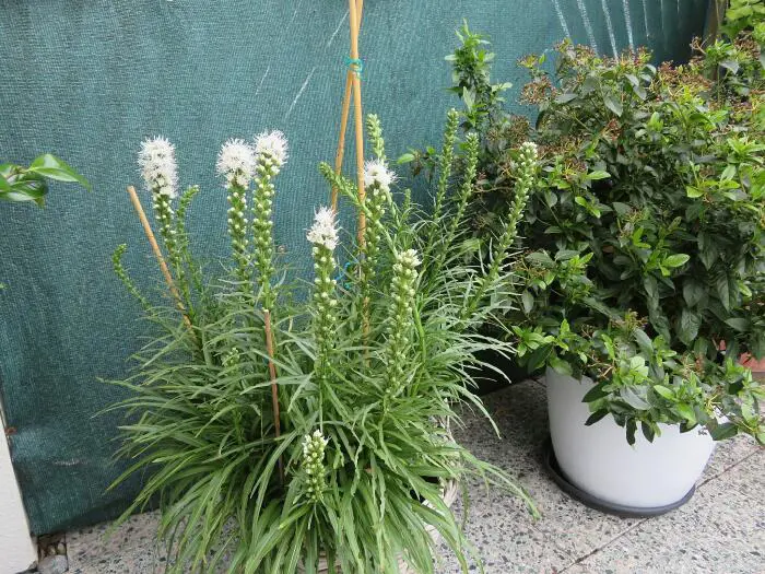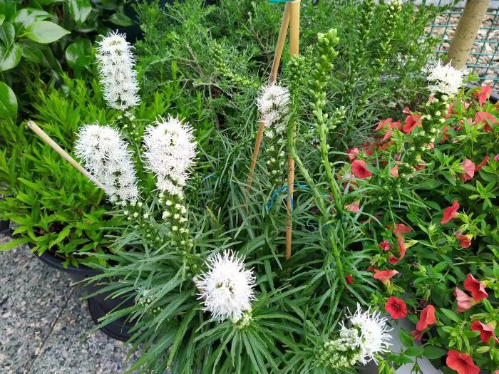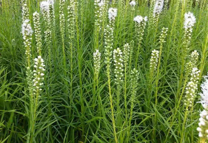 Liatris spicata 'Floristan Weiss' zijn mooie stevige planten voor in de border, vooral in grote groepen komen ze goed tot hun recht.