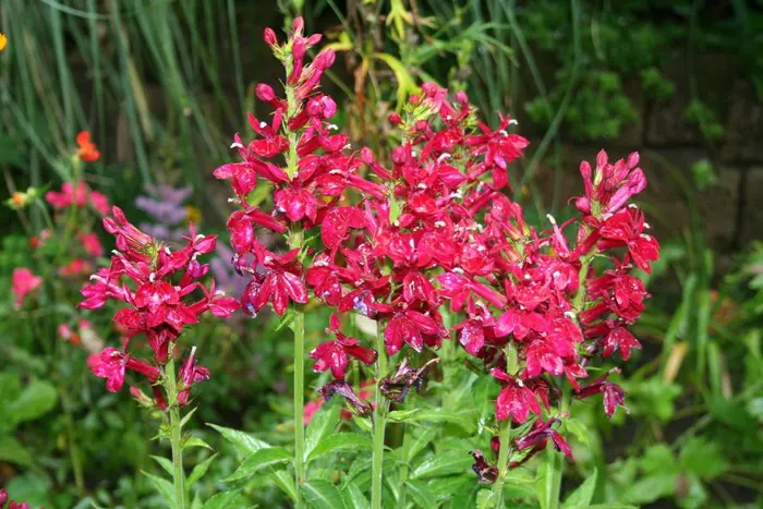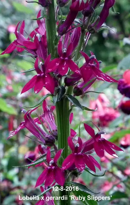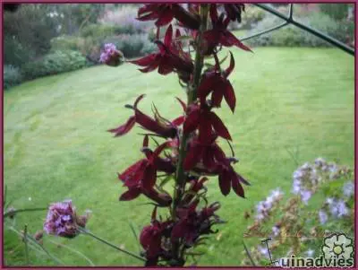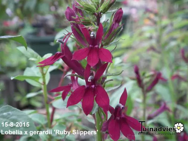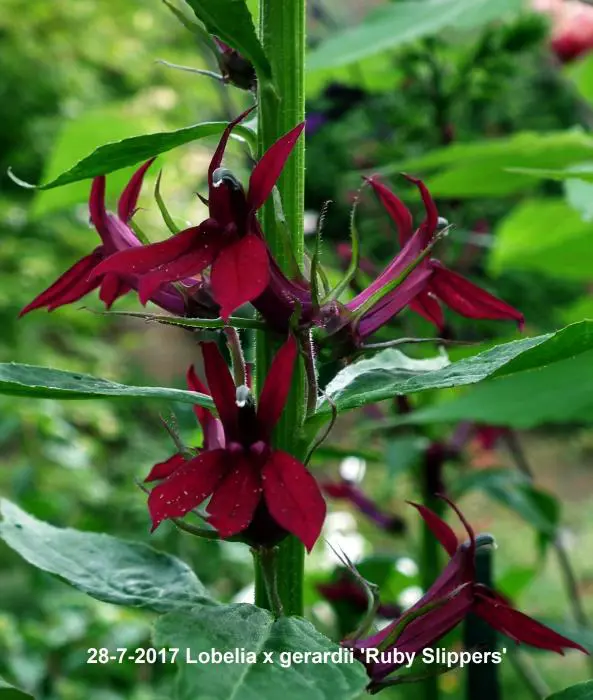 Lobelia x gerardii 'Ruby Slippers' staat liefst in volle zon tot licht schaduw en ze heeft een mooi donkere paarsrode kleur