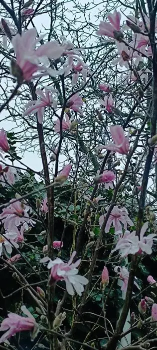 Magnolia stellata 'Rosea' s een compacte, breed ronde heester met lancetvormige groene bladeren en een rijke bloei van zijdeachtige knoppen die zich openen tot stervormige, licht geurige, lichtroze bloemen.