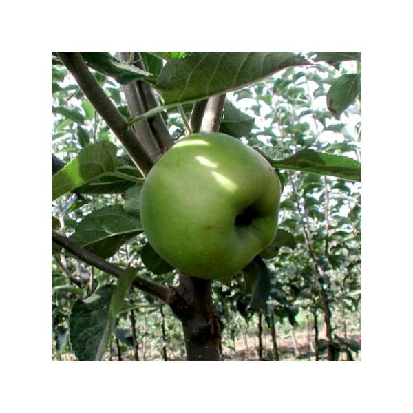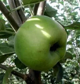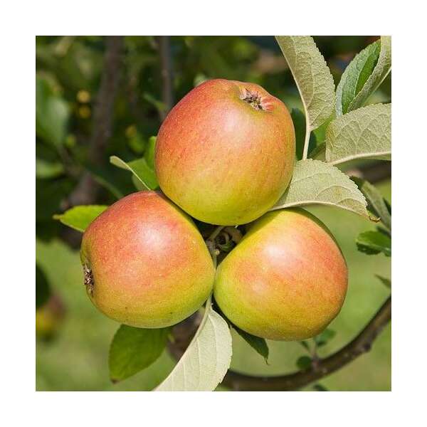 Malus domestica 'Reine des Reinettes' produceert goudgele appels met bruinoranje vlekken.