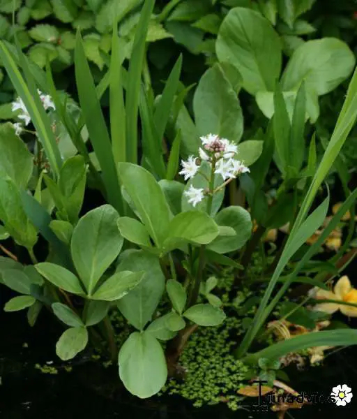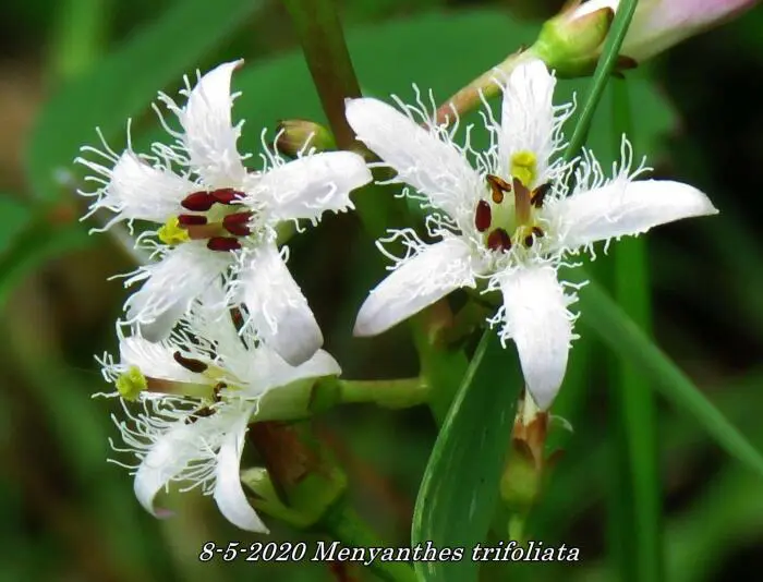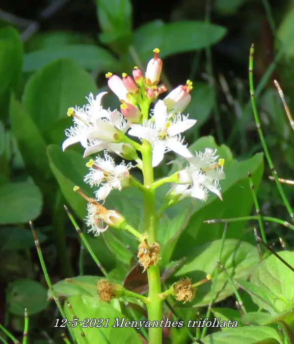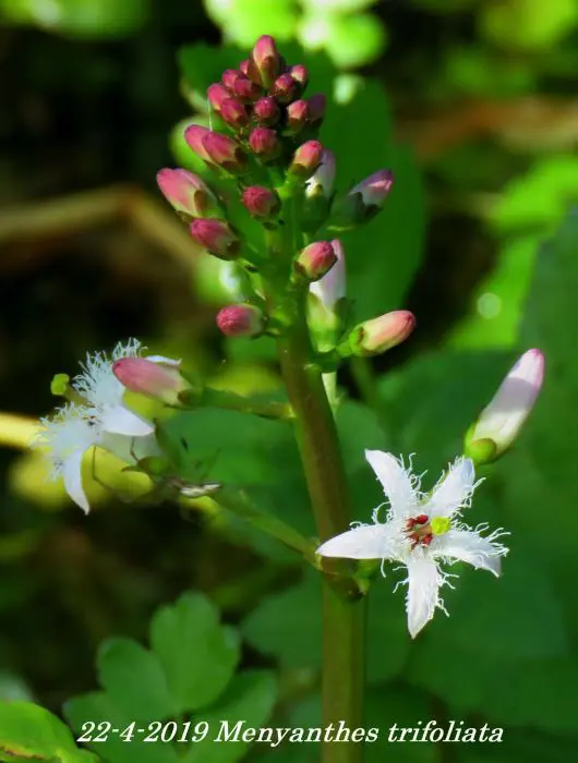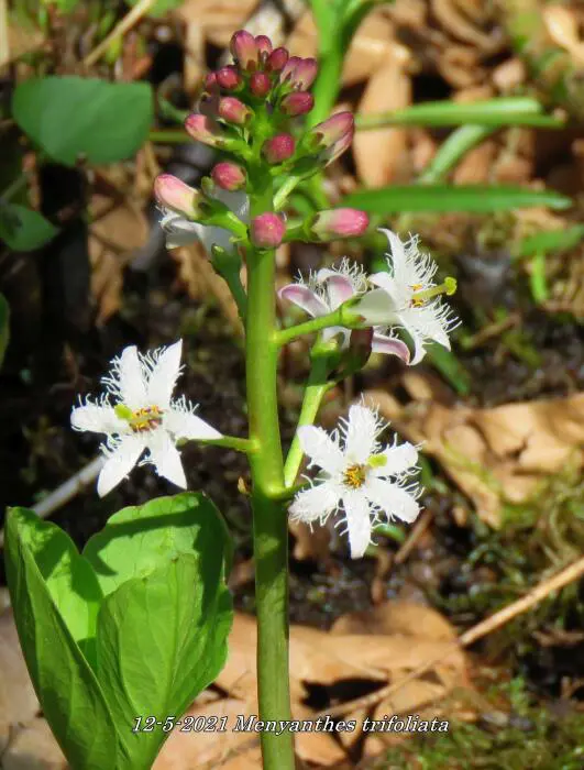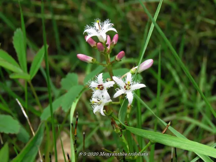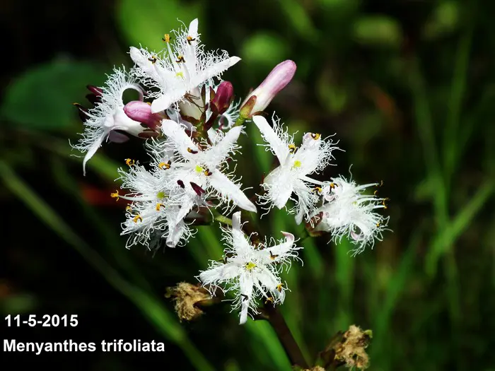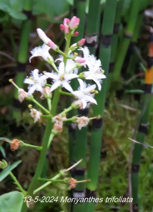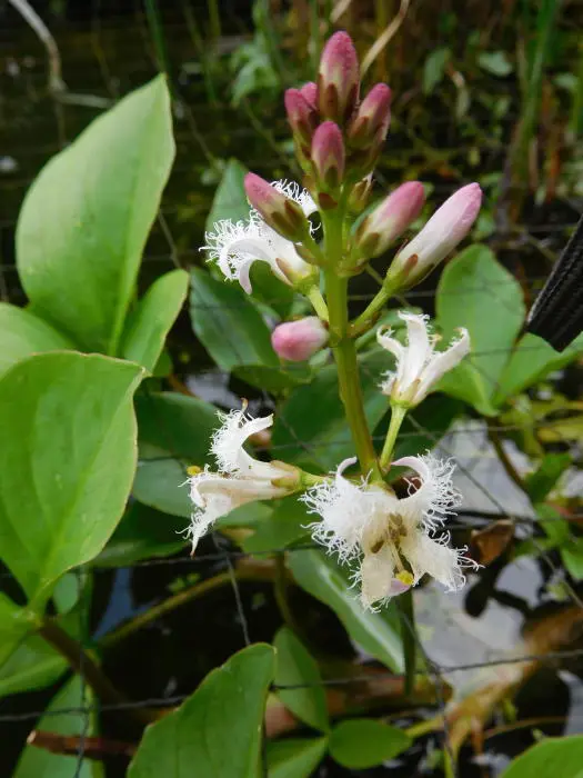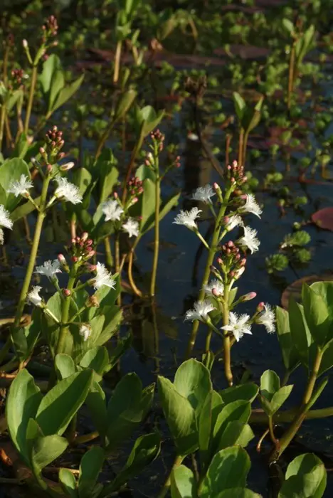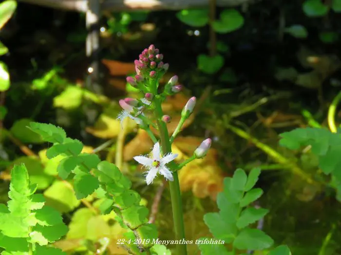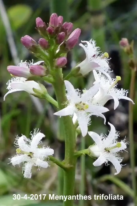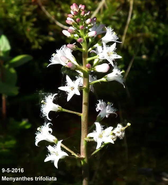 Menyanthes trifoliata is een meerjarige semi-aquatische oeverplant met kruipende wortelstokken, groeit in ondiep water (10-20cm.).