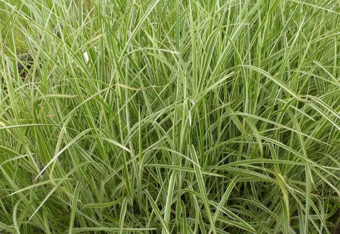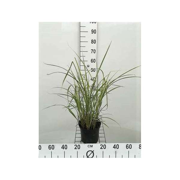 Miscanthus sinensis 'Variegatus' is een mooi siergras voor de tuin met heel smalle, witgerande groene bladeren.